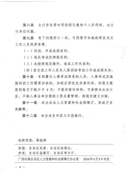 柳人社发【2016】112号 关于转发《广西壮族自治区人事考试劳务费管理办法(试行)》的通知 来源: 发布时间:2017-05-03 20:12:00 浏览次数: 次 【字体:小 大】 分享到: 【打印正文】