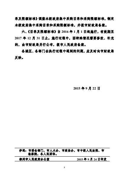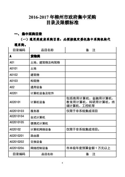 柳政办【2015】126号 关于公布2016-2017年柳州市政府集中采购目录及限额标准的通知 来源: 发布时间:2017-05-03 20:13:00 浏览次数: 次 【字体:小 大】 (2017/4/25) 点击:12 关闭 分享到: 【打印正文】