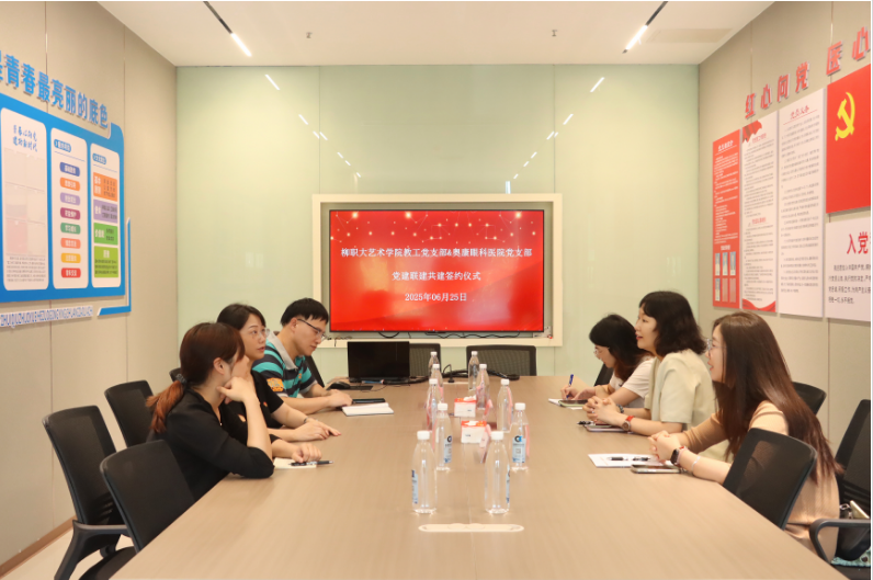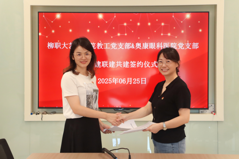 新闻网消息(文、图/艺术学院 杜昕)2025年6月25日,柳州职业技术大学艺术学院教工党支部和柳州奥康眼科医院党支部在柳州奥康眼科医院会议室举行联建共建签约仪式,艺术学院党总支书记崔智慧、艺术学院教工党支部书记黄小铁、艺术学院组织员杜昕到场参加签约仪式,艺术学院教工党支部书记黄小铁与柳州奥康眼科医院党支部书记禹海燕并代表双方签署协议。