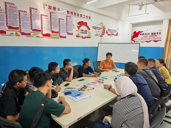 新闻网消息(图/机电工程学院 李柏乐 文/机电工程学院 梁磊)近日,在2025年世界职业院校技能大赛国际组东南亚线下赛备赛中,机电工程学院教工第一党支部选派两名党员教师,负责指导由中印联合组成的六支参赛队伍中的两支队伍。队员均来自“1+1+1”合作办学项目的印度尼西亚学生。面对需用英语全程指导的挑战,党员教师主动担当,结合赛事规则与东南亚赛区特点,全力投入备赛指导工作。