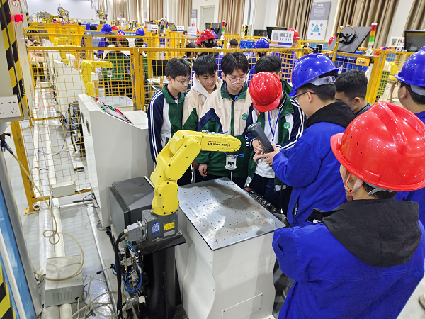 新闻网消息(文、图/机电工程学院 黄恒江)2025年3月11日下午,2023电气自动化技术1班团支部带着专业热情与公益初心,为玉林新世纪高级中学前来研学的同学们开展了一场别开生面的发那科机器人操作与使用教学活动。春风化雨润心田,雷锋精神永流传,志愿者们以技术为纽带,以奉献为底色,用实际行动诠释新时代的雷锋精神。