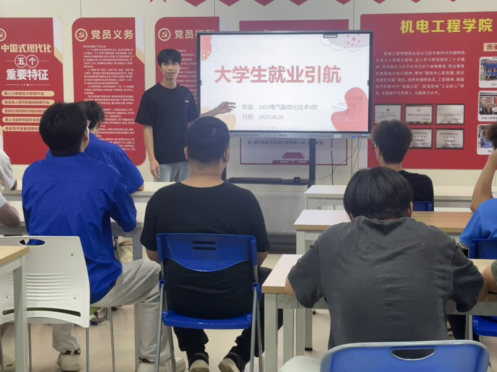 新闻网信息(文/机电工程学院 张颗星 图/机电工程学院 夏立洋)2025 年 6 月 8 日,2023 电气自动化技术 4 班团支部聚焦学生就业需求在在思园党建工作站开展了一场别开生面的大学生就业引航团日活动,为同学们明晰就业形势、提升求职能力搭建了坚实平台。