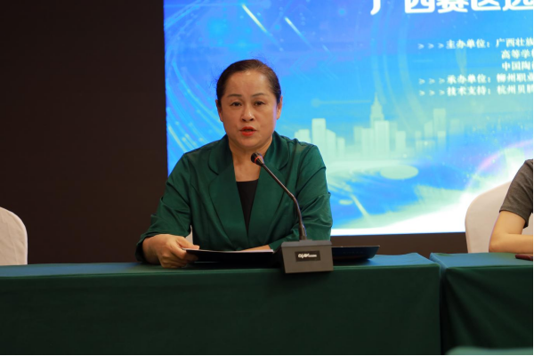 柳州职业技术学院创新创业学院执行院长许明教授介绍了学校的基本情况、办学理念、创新创业工作等情况。她表示,创新创业学科竞赛是推进高校就业创业教育工作、开展创新型人才培养的重要手段,“学创杯” 大赛作为中国高等教育学会《全国普通高校大学生竞赛排行榜》中的重要赛事,对促进高校就业创业教育的蓬勃开展、鼓励高校组建创业模拟实践教育体系具有推动作用。