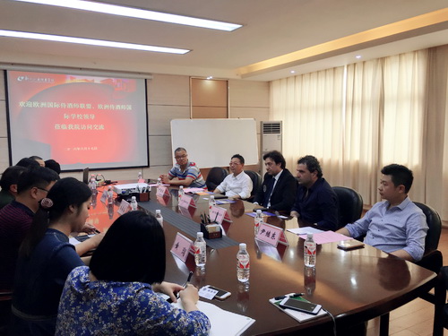 林副院长首先对我院情况进行了简要介绍,随后欧洲国际侍酒师联盟主席TOMASELLO先生也简要介绍了侍酒师联盟及欧洲国际侍酒师培训学校的情况,双方对各自感兴趣的问题进行了交流,并对今后的进一步合作充满期待。