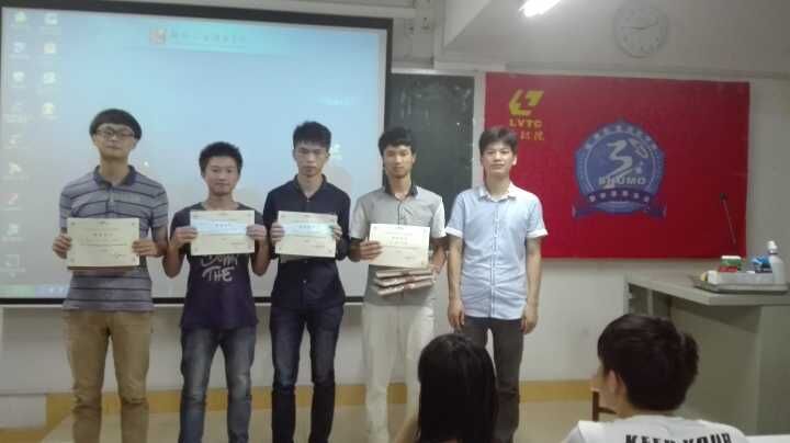 颁奖仪式在6月15日晚上举行,数学建模协会全体成员参加。韦碧鹏和钟磊两位老师分别对此次竞赛C题和D题的参考答案进行了讲解,并为获奖队伍颁发了获奖证书和奖品。至此,学院2016年首届大学生数学建模竞赛圆满结束。