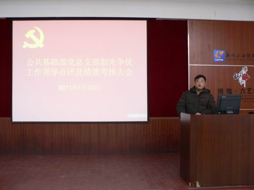 2011年1月13日下午,公共基础部党总支部召开创先争优工作领导点评大会?;嵋橛傻匙苤榧墙咨鞒?,学院创先争优活动领导小组联系点领导、院党委委员熊文华副院长和全体党员教师出席了会议。