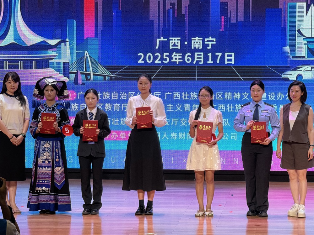 新闻网消息(文/电子信息工程学院 钟舒娴、校团委 覃露颖 图/电子信息工程学院 黄浩然)6月17日,由自治区公安厅、自治区文明办、自治区教育厅、共青团广西区委联合主办的第二届广西大学生交通安全文明宣讲大赛决赛在广西艺术学院顺利举行。我校由钟舒娴、黄磊两位老师指导,贝静、黄浩然、阮学斌、衣力夏提、祖拉·金恩斯、阿迪兰·海提明等同学组成的参赛队伍表现突出,荣获优秀奖,成为柳州市唯一一支晋级决赛的高校代表队,充分展现了我校青年学生良好的精神风貌与综合素质。