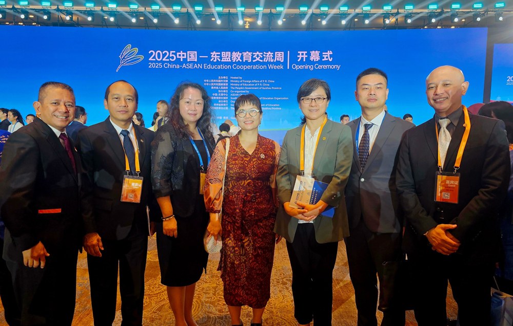 新闻网消息(文、图/国际交流处(港澳台事务办公室)覃薇因)7月26日上午,2025中国-东盟教育交流周(以下简称“交流周”)在贵阳市隆重开幕。交流周由中国外交部、教育部与贵州省人民政府联合主办,教育部副部长吴岩、多个东盟国家教育部领导出席开幕式。印尼高等教育与科技部副部长蒋黛兰女士在发言中高度赞赏中印尼教育合作成果,对我校及我校引领实施的职业教育合作项目给予特别肯定与感谢。