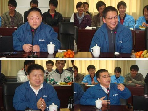 电子电气工程系党总支书记伍柳首先致欢迎词,欢迎远道而来的企业专家?;嵘希淌Υ砹醯氯鲜脱碜坑耆嵬Х直鹱髁颂馕斗⒀锲笠稻?,踏实学好专业知识和技能》和《保持良好习惯,提升职业素质》的总结报告。他们总结了2008年到伟易达电子厂开展顶岗实习的情况,并对今年即将赴厂实习的09级的同学们提出希望,希望他们能够在实习中取得更好的成绩。随后,东莞伟易达电子厂马民和经理也就2008年我院与企业开展的顶岗实习情况进行了总结,对大学生就业应做什么准备提出了中肯的意见。