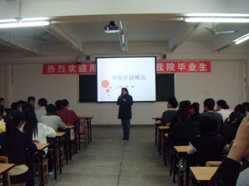 为了加强我院社团干部队伍建设,提高社团干部的综合素质和工作能力,更好地开展学生社团工作,发挥我院团委领导下的社团组织和学生干部的积极作用,2010年4月10日下午,院团委在招生就业处一楼举办了学院第一期社团干部成长培训班。
