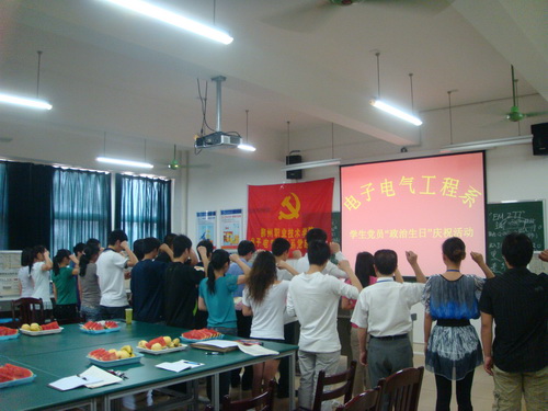 “每人都会有一个生日,而每位党员却有两个生日。一是自然生日,标志一个生命的诞生。记住它是对生命的珍视和珍重,纪念它是对赐予你生命的伟大母亲的感动和感恩;另一个是政治生日,从你入党之日起,你的政治生命就开始了,你的政治生命属于党,纪念它是对党的忠诚和信仰,是每一名党员对党的感激和感谢?!?010年5月24日电子电气工程系党总支举行了“学生党员政治生日”庆祝活动。