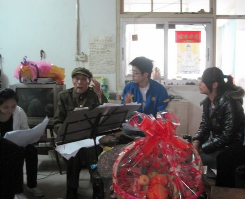 今年82岁高龄的老红军杨静老人,2010年曾来我院经济管理系做过报告。在简朴的客厅中,健谈的老人与青年党团员们亲切地拉起了家常。同学们关心地询问老人的身体和生活情况,和老人一同回顾当年战火硝烟的岁月。当得知杨静老人参加过平津战役和抗美援朝等辉煌战役,为新中国成立贡献了青春和热血的感人事迹后,同学们深受感动。随后还为老人做了一些力所能及的家务。
