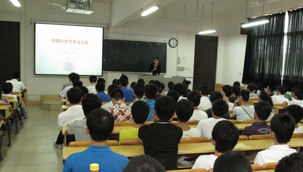 2012年10月19日下午,应“博雅?六艺”讲坛之邀,学院党委宣传部部长左妮红副教授在博闻楼311教室为我院大学生带来了一场主题为《培养积极心态,体验幸福生活》的心理知识讲座,来自全院各系的200多名学生聆听了本次讲座。