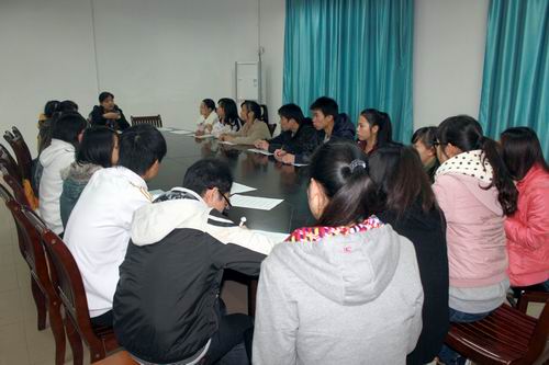 11月30日下午,贸易与旅游管理系在系会议室召开期中学生信息员座谈会,征求同学们对开学以来系部教学、管理等各项工作的看法和意见。会议由该系主管教学的谭欣副主任主持,各年级学生信息员和教学工作人员参加了会议。