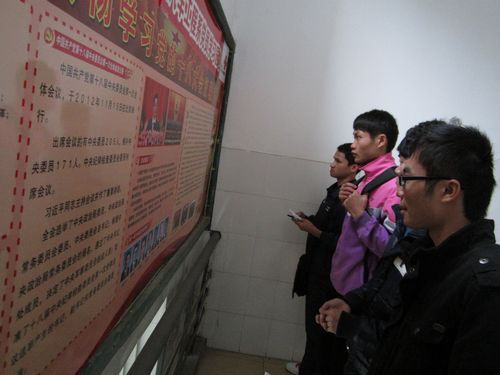 学生们通过宣传板报学习十八大精神