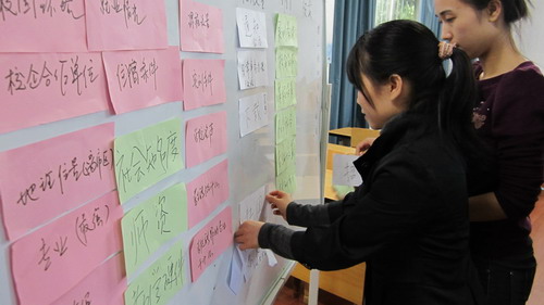 为了充分发挥宣传主渠道作用,展示系部形象,打造系部电子名片,系部领导强调必须重视网站建设,广泛征求教职工意见;要求网站建设一定要结合系部自身特点和发展方向,一定要结合受众和目标客户群的需求?;嵋榇蚱瞥9?,创新思路,突破了以往的传统开会模式,将“头脑风暴”用于研讨会中,与会人员分成三组,针对提出的“谁会关注系部网站?不同的人群分别会关注哪些内容?怎样呈现这些内容?”三个问题及其具体内容,各小组掀起“头脑风暴”,展开了发散性思维大讨论,并依次上台展示和陈述。