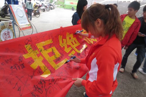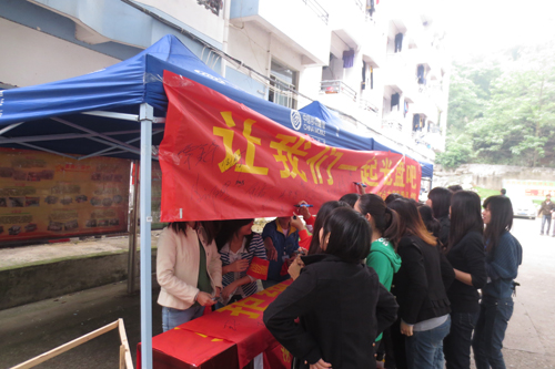 “让我们一起光盘吧!”4月9日,一条巨大的横幅吸引了过往行人的注意,同学们纷纷停下匆匆的脚步,围了上来——发扬中华民族勤俭节约、珍惜粮食的传统美德,倡导同学们节约粮食、反对浪费粮食,共同构建节约型校园。4月9日,我院大学生自主管理委员会在学院坡下食堂门口进行了名为“光盘行动”的主题宣传活动。