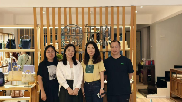 学院一行首站走进广州潮艺贸易有限公司旗下国风箱包品牌PMSIX天煦。在品牌设计总监张志芳的热情引领下,众人参观了企业研发中心与品牌直播中心。张志芳介绍,PMSIX天煦以“让传统文化焕发时尚新生”为使命,深挖五千年历史底蕴与五十六个民族文化精髓,将芍药、牡丹等传统元素融入箱包设计,通过创新工艺,打造出兼具文化韵味与现代审美的箱包产品,为独立女性开辟全新时尚视角。