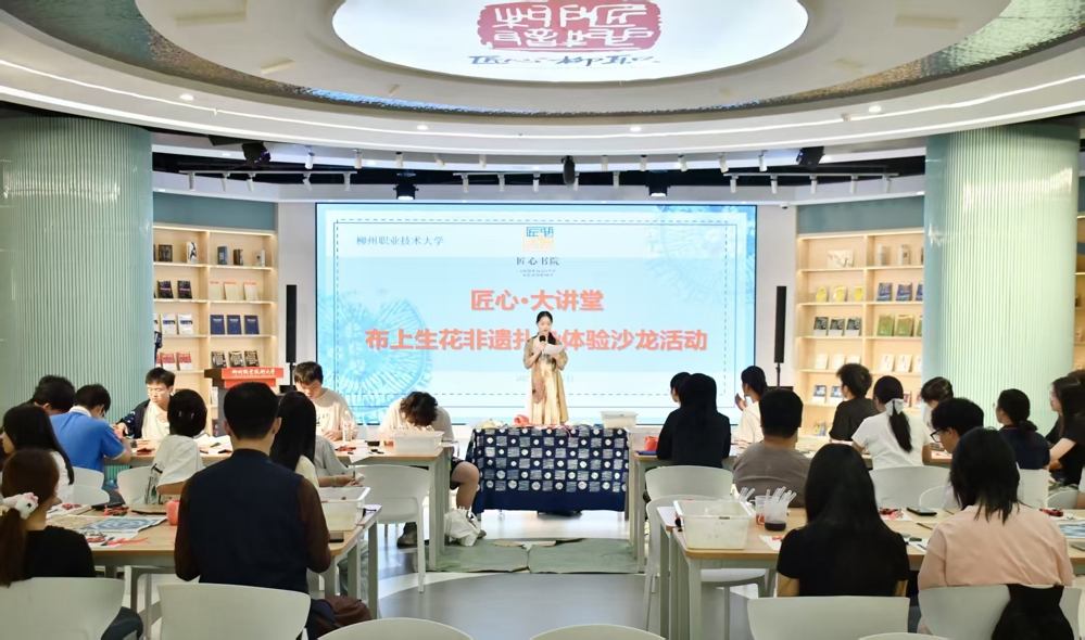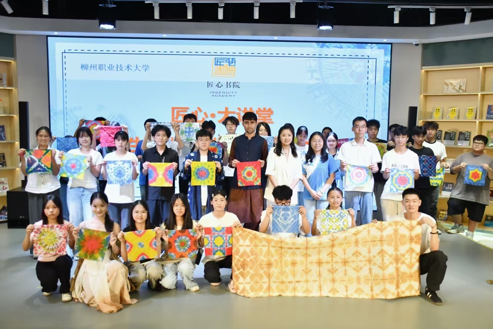 新闻网消息(文/艺术学院 韦益良 马云 图/匠子工作室 黎宏桦 周妍如)2025年6月27日下午,由党委学生工作部(处)、匠心书院主办,艺术学院承办的2025年第13期博雅·素质大讲堂之“布上生花,非遗扎染体验”主题活动在匠心书院匠心大厅内精彩上演。本次活动由艺术学院服装与服饰设计专业团队负责人马云老师主讲,吸引了50余名官塘校区在校生热情参与,其中包括来自国际交流处的外籍留学生,共同体验了非遗扎染技艺的独特魅力。