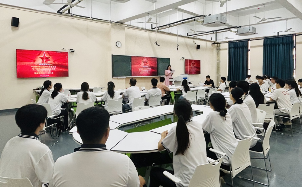 新闻网消息(文、图/电子信息工程学院 安越) 6月29日,电子信息工程学院学生第一党支部在T2-A208召开预备党员转正大会,审议16名预备党员的转正申请。大会严格遵循党章规定程序,通过奏唱国歌、预备党员汇报思想、党小组评议、支部表决等环节,庄严完成预备党员转正工作。支部书记赵泽龙,全体教师、学生党员参会,会议由学生第一支部组织委员简乐怡同志主持。