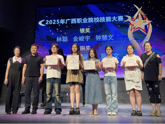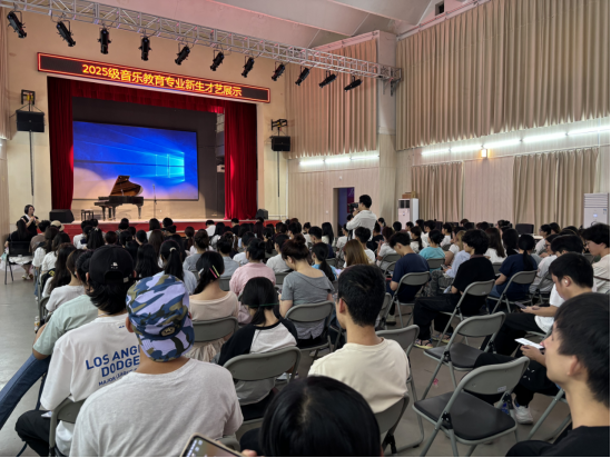 9月16日下午,音乐教育专业的特色活动“新生才艺展示”在大学生活动中心进行,艺术学院领导出席并参加活动。音乐教育专业全体教师与新生、老生在这里举行了一场盛大的师生见面会?;疃谝徊糠?,由学院领导为音乐教育专业参加2025年世界职业院校技能大赛、区级职业院校技能大赛及专业类比赛的获奖选手颁奖,这既是对获奖选手的鼓励和肯定,也是对即将开启大学生涯的新生们的激励;活动第二部分,由2025级新生们带来形式丰富的才艺展示,有歌曲演唱、钢琴独奏、琵琶独奏、舞蹈表演以及配音朗诵等,展示了新生们良好的精神风貌?;疃谌饶趾托车姆瘴е薪?。
