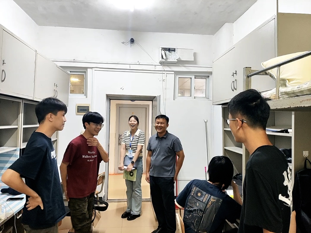 傍晚时分,学院党委书记贾洪峰、党委副书记蓝杜骞分别带领辅导员团队、辅导员助理深入学生宿舍,逐一走访看望新生,与新生们亲切交谈,仔细询问他们来自哪里、对新环境的适应情况以及是否习惯学校的饮食等,鼓励大家以积极心态迎接大学新生活,尽快融入艺术学院的温馨集体。交谈中,新生们积极分享了自己初入校园的感受和对未来大学生活的期待,同时也对领导和老师到宿舍看望自己表示感谢。
