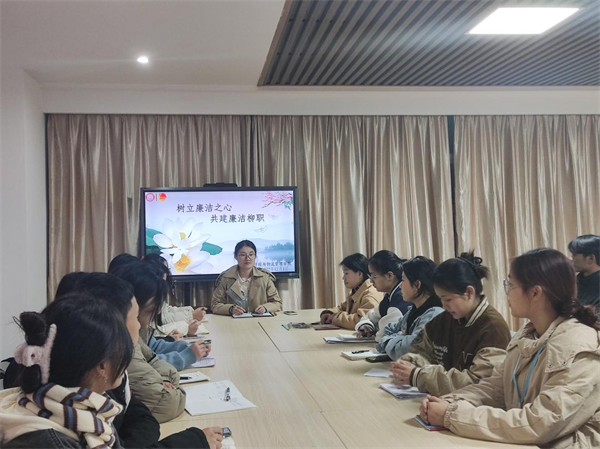 新闻网消息(文/财经与物流管理学院 宋鑫悦 卢梅彤 图/财经与物流管理学院 谢诗漫)为引导财经与物流管理学院学生会成员树立廉洁意识,共建清廉柳职,以强烈的责任感和使命感,认真履行自己的义务。同时,为指导新一届学生会成员工作要领,确定今后工作的主要任务,财经与物流管理学院于12月1日晚在怡园党建工作站举办财经与物流管理学院学生会“树立清廉之心,共建清廉柳职”主题活动,这也是学生会换届以来的第一次全体会议。财经与物流管理学院宋鑫悦老师主持会议,学院全体学生会成员参会。