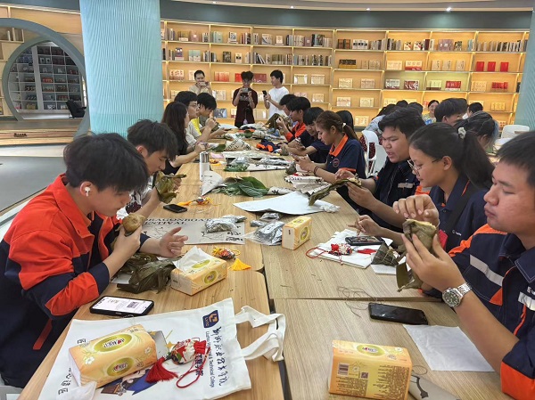 活动最后,同学们一起吃粽子、交流家乡的端午节习俗。留学生们纷纷表示,中华文化博大精深、内涵丰富,此次沉浸式体验活动非常有趣,令人印象深刻。